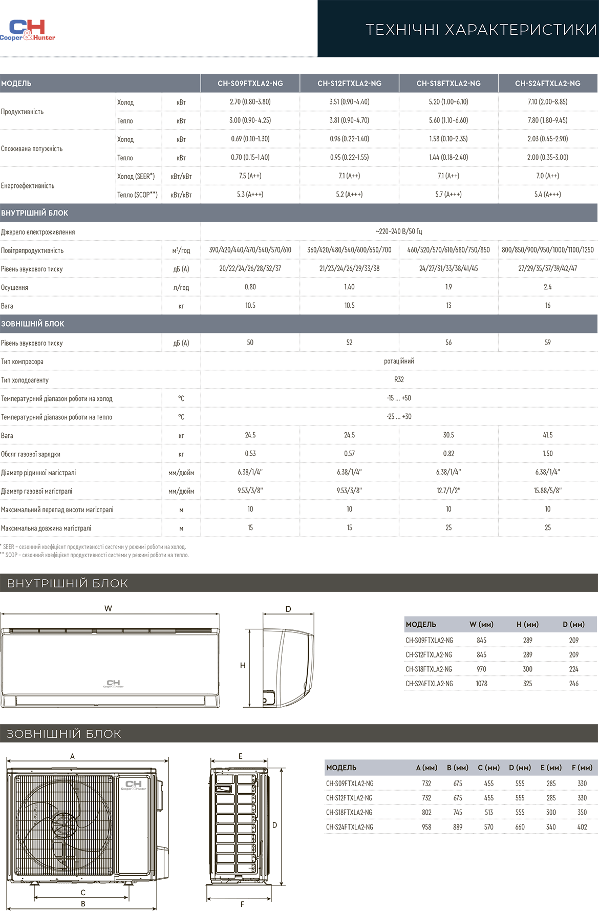 | Вага внутрішнього блоку 9/12/18/24 | 9/9/13.5/17.0 кг |