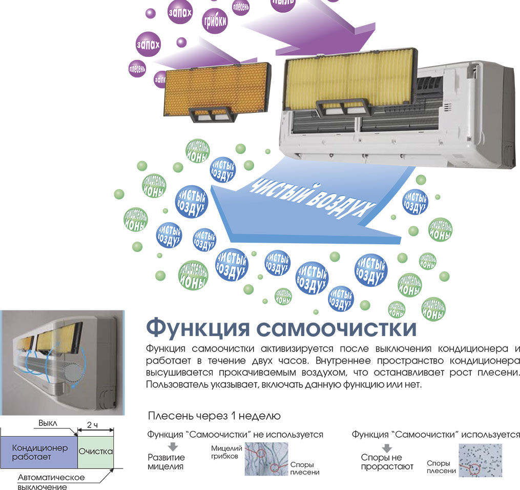 Инверторное управление. Низкий уровень шума (до 23 ДБ). Высокий уровень энергосбережения. Режим самоочистки CLEAN. Работа в режиме обогрева помещения при наружной температуре до -15°С. Функция авторестарта, функция самодиагностики, таймер на 24 часа, ночной режим. Фильтры тонкой очистки могут быть предложены опционально. Гарантия 3 года. Пр-во Таиланд.