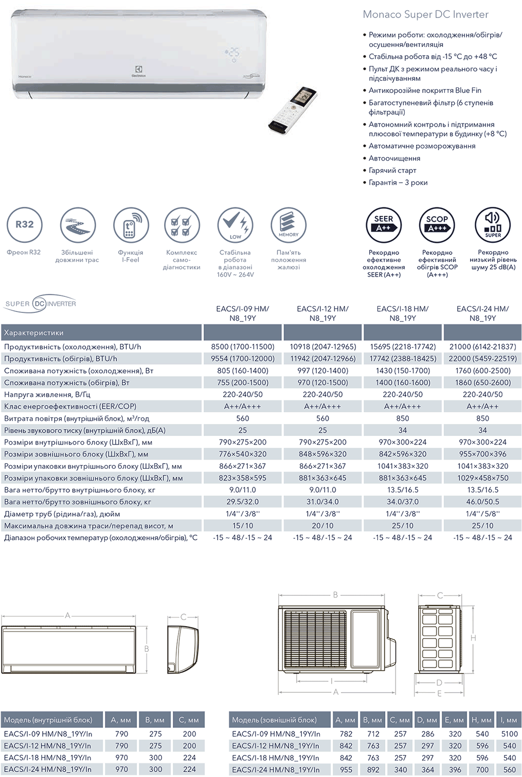 Кондиционеры Electrolux серии Inverter холод/тепло. Авторестарт, мягкий старт, горячий старт, низковольтный пуск, низкотемпературный пуск, широкоугольные жалюзи, автоматическое качание вертикальных жалюзи, LED дисплей, пульт ДУ, таймер 24 часа, класс энергосбережения А+++, защита от перепадов напряжения, низкий уровень шума 24дБ, защита дома от обмерзания +8°C., турбо режим, ночной режим, авто режим, самодиагностика, автоочистка, автоматическая разморозка, работа на обогрев -15°C. Wi-Fi (опция 950 грн.) модуль. Фреон R-32. Пр-во Гон-Конг. Гарантия 3 года.