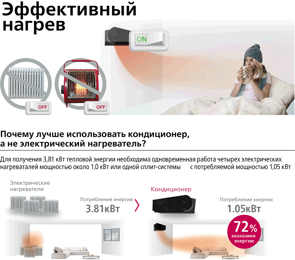 | Производительность обогрева 9/12/18/24 | 2.8/3,4/6.0/7.1 кВт |
