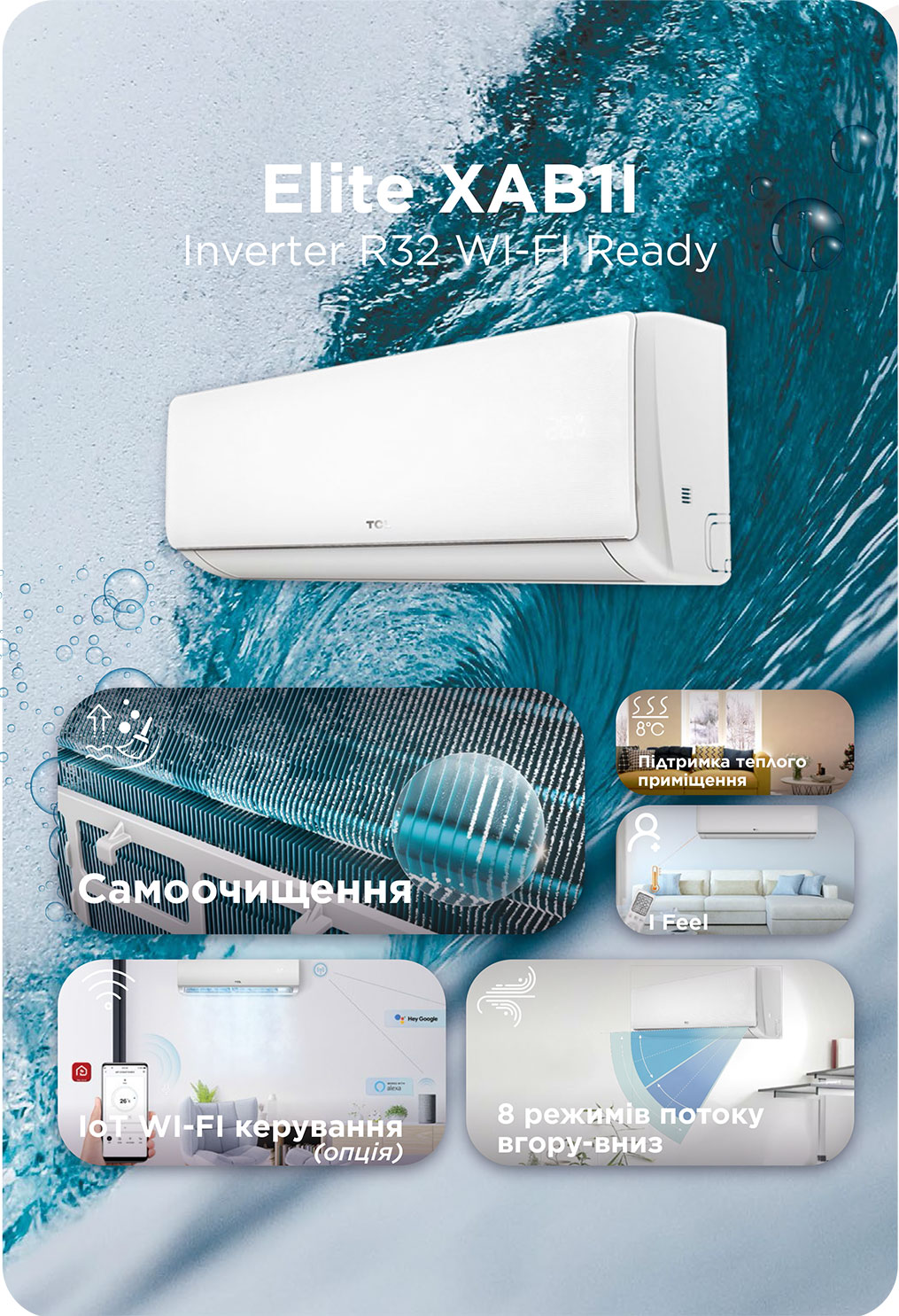 Кондиціонер TCL серії Inverter – вдале поєднання елегантності та сучасних технологій. Інверторне керування. Спліт-система забезпечена всіма необхідними режимами (охолодження, обігрів, осушення, вентиляція) та широким набором функцій: Timer, Авторестарт та Нічний режим. Енергоефективність класу А ++. Технологічна та конструктивна перевага цієї серії – автоматичні вертикальні та горизонтальні жалюзі, що дозволяють рівномірно поширювати повітря по приміщенню. Wi-Fi модуль (опція 970 грн.), для керування кондиціонером через Смартфон/Планшет. Фреон R-32. Робота на обігріві до -20°С. Пр-во Гонг-Конг. Гарантія 3 роки.