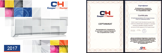 Сертифікат Cooper&Hunter про проходження щорічного навчання. Той, хто дає право продовжувати гарантію на побутові кондиціонери до 5 років.